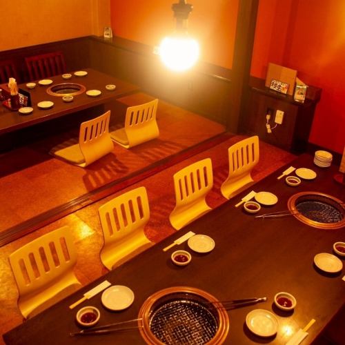 【プライベート空間でゆったり】周りを気にせずお食事を楽しめる個室を5卓ご用意しております。4名様用が2卓、6名様用が1卓、8名様用が2卓あり、大切な方との記念日や誕生日、会食や接待などのビジネスシーンにも最適なお席です♪落ち着いた雰囲気の中で、上質なお肉を心ゆくまでご堪能ください。